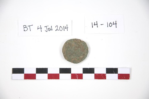 14-104 (6036012) Bronze coin. Small losses along edge. Obverse: male head facing r., possibly …