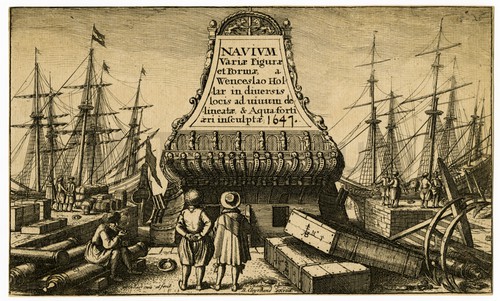 Navium Variae Figure et Formae The print depicts two men standing seen from behind looking at title …