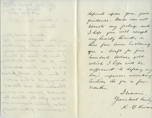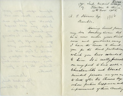 Letter from Dr. K.Y. Kwan to Alfred E. Stearns. November 4, 1908.