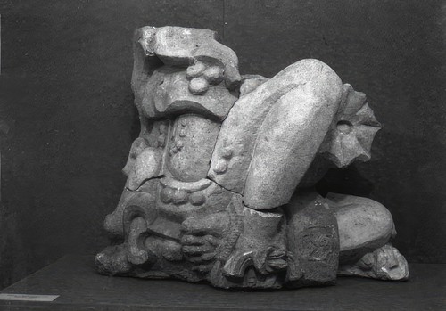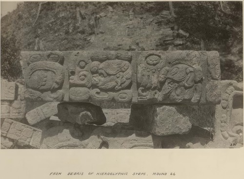 Figure from hieroglyphic steps, Mound 26 Copan Album: Volume 7, Page 33; Written on page: "From debris of …