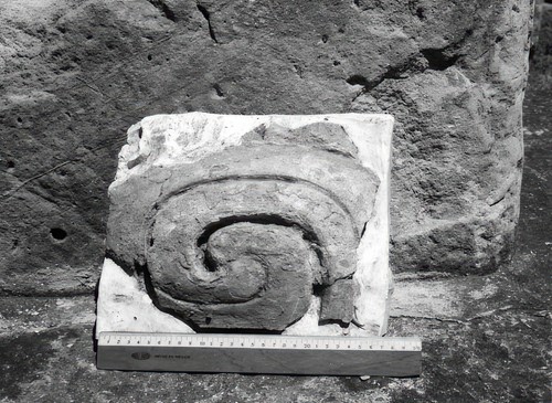 Fragmentary sculpture from top of slope, north of Temple 22 Fragmentary sculpture from top of slope, north of Temple 22. Honduras, Copan. …