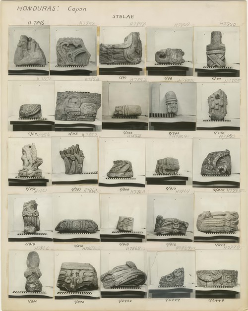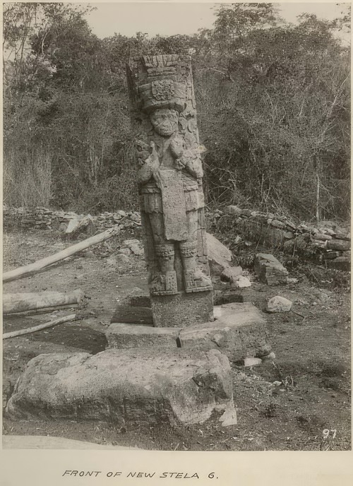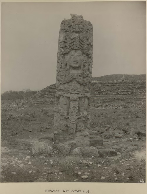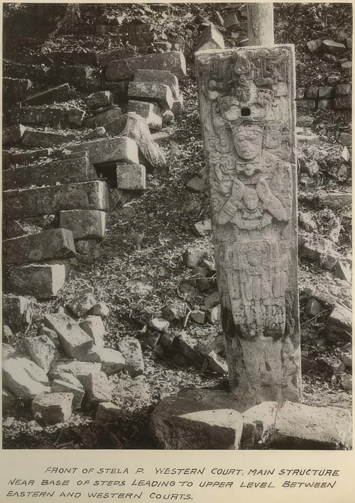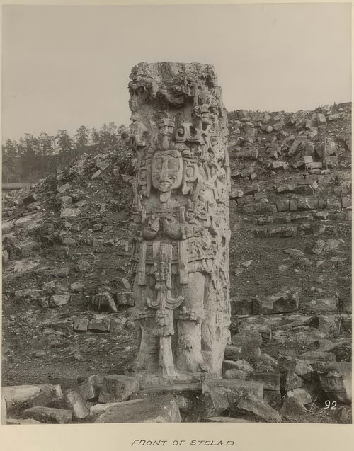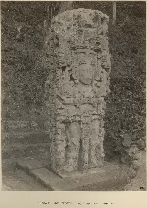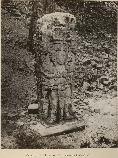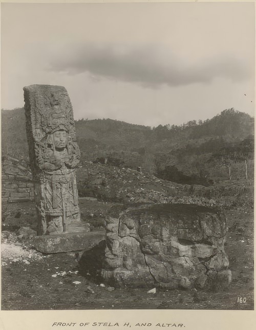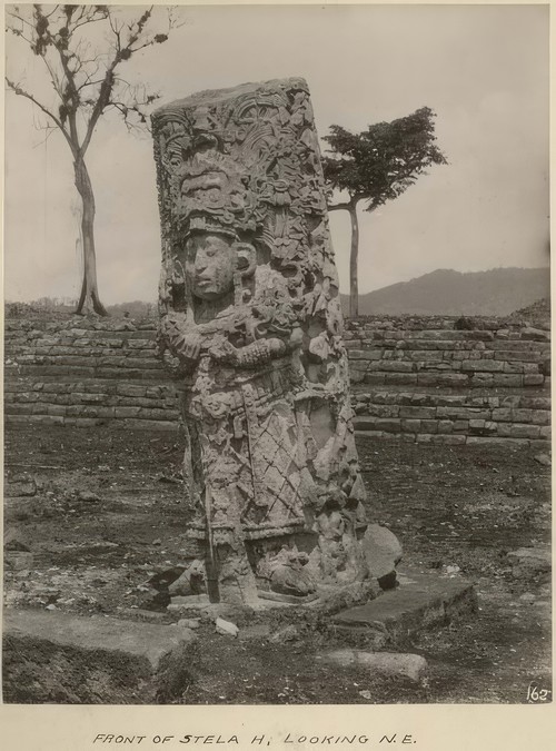 Front of Stela H, looking northeast Copan Album: Volume 1, Page 28; Written on page: "Front of Stela …