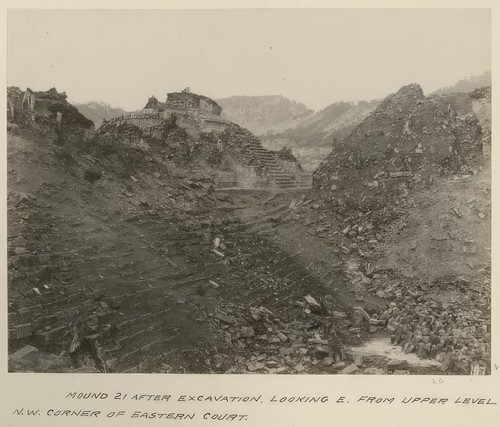 Mound 21 after excavation, looking east Copan Album: Volume 3, Page 16; Written on page: "Mound 21 after …