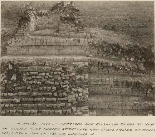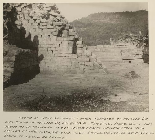 Mound 21, view of terraces and flight of steps Copan Album: Volume 3, Page 18; Written on page: "Mound 21, view …