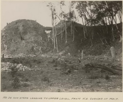 Mound 26 and steps leading to upper level, from northeast corner of … Copan Album: Volume 2, Page 44; Written on page: "Md. 26 and …