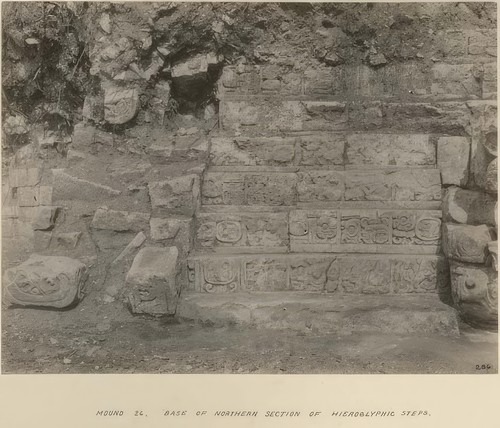 Mound 26, base of northern section of hieroglyphic steps Copan Album: Volume 7, Page 28; Written on page: "Mound 26. Base …