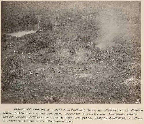 Mound north of Plaza Grande in which tomb 3 was found, looking … Copan Album: Volume 4, Page 18; Written on page: "Mound north of …
