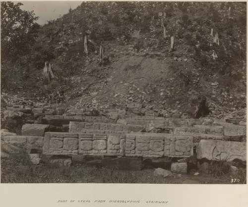 Part of steps from hieroglyphic stairway Copan Album: Volume 9, Page 18; Written on page: "Part of steps …