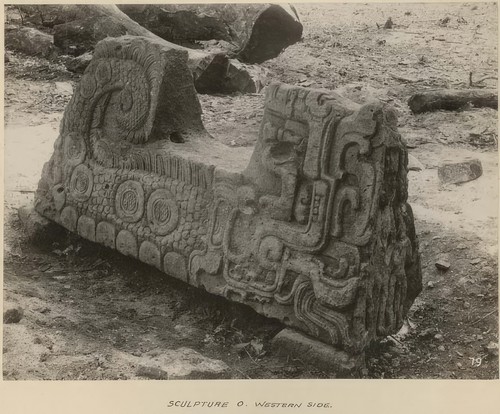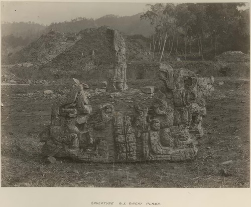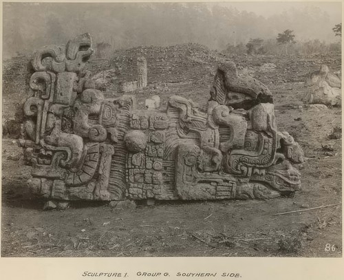Sculpture 1, Group G, southern side Copan Album: Volume 1, Page 23; Written on page: "Sculpture 1. Group …