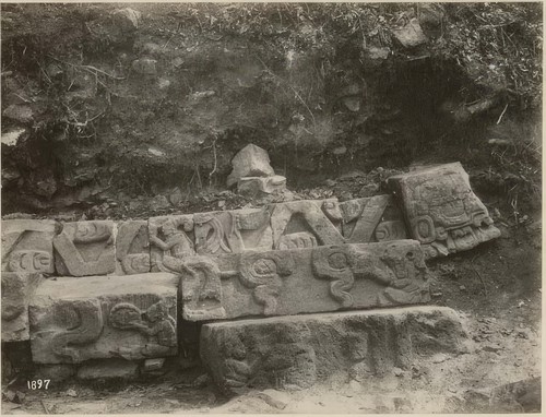 Sculptures from hieroglyphic stairway Copan Album: Volume 9, Page 17; Written on page: "Sculptures from hieroglyphic …