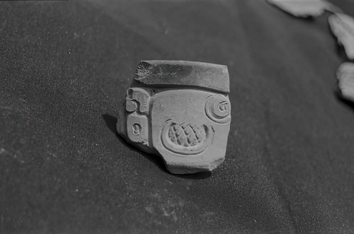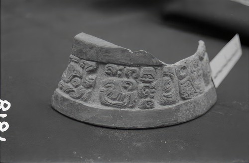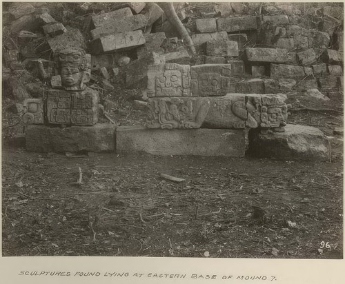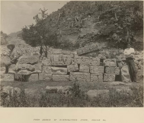 Sculptures from debris of hieroglyphic steps, Mound 26 Copan Album: Volume 7, Page 36; Written on page: "From debris of …