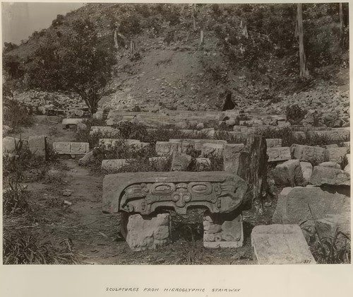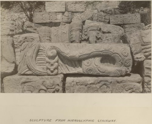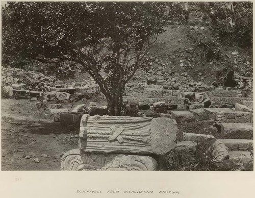 Sculptures from hieroglyphic stairway Copan Album: Volume 9, Page 15; Written on page: "Sculptures from hieroglyphic …