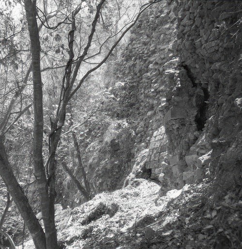 Sculptures from slope north of Temples 21 and 22 Copan Album: Volume 9, Page 43; Written on page: "Sculptures from slope …