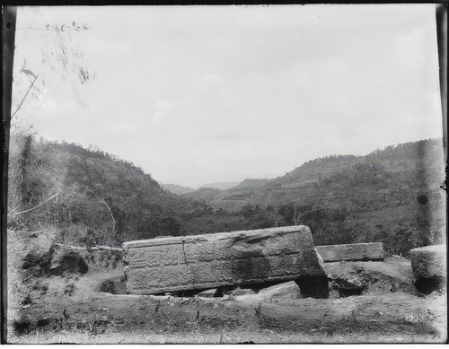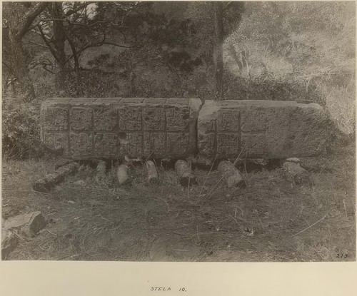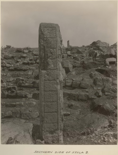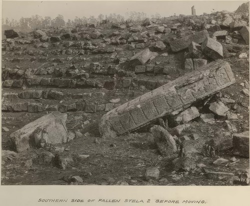 Southern side of fallen Stela 2 before moving Copan Album: Volume 2, Page 11; Written on page: "Southern side of …