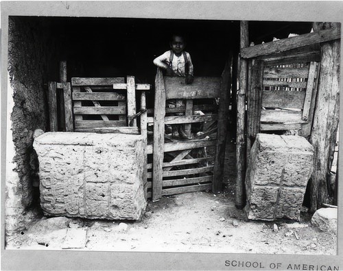 Square structure below level of ground near southeast corner of Mound 36 Copan Album: Volume 4, Page 1; Written on page: "Square structure below …