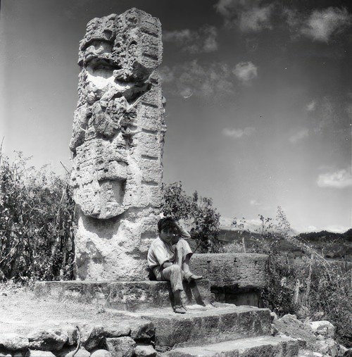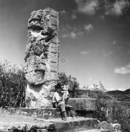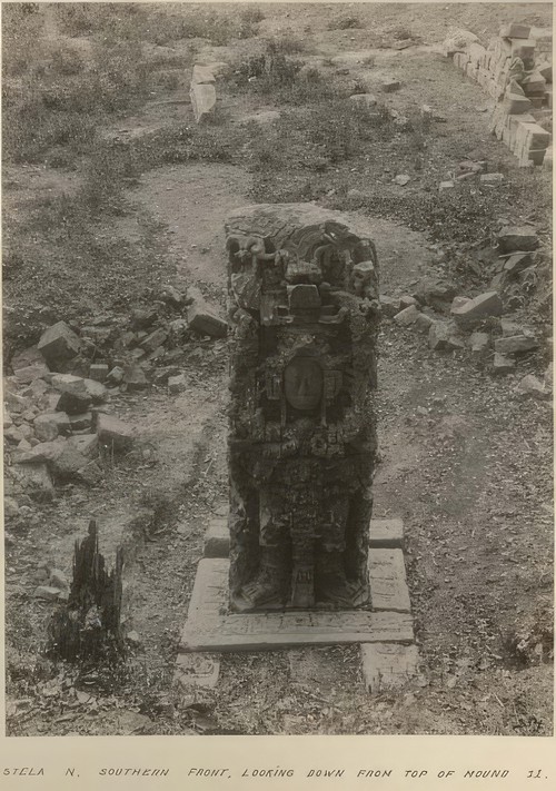 Stela N, southern front, looking down from top of Mound 11 Copan Album: Volume 6, Page 24; Written on page: "Stela N. Southern …