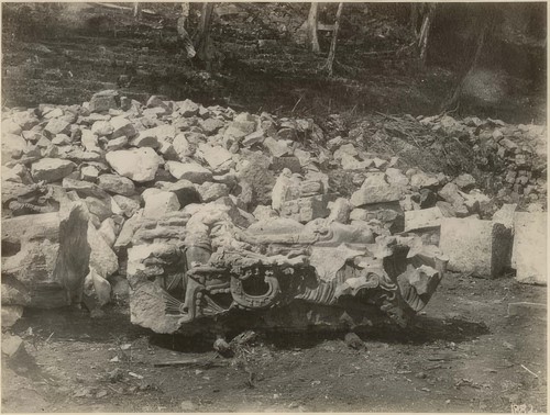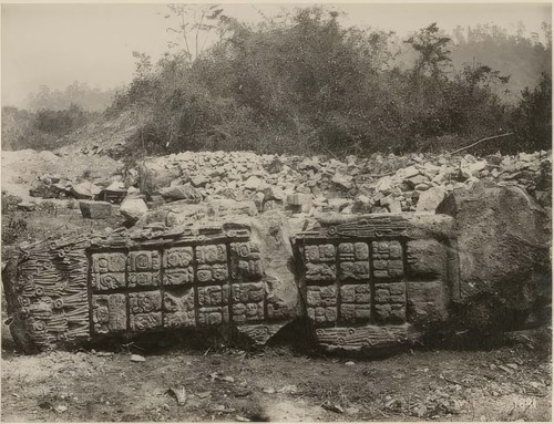 Step from hieroglyphic stairway Copan Album: Volume 10, Page 28; Written on page: "Step from hieroglyphic …