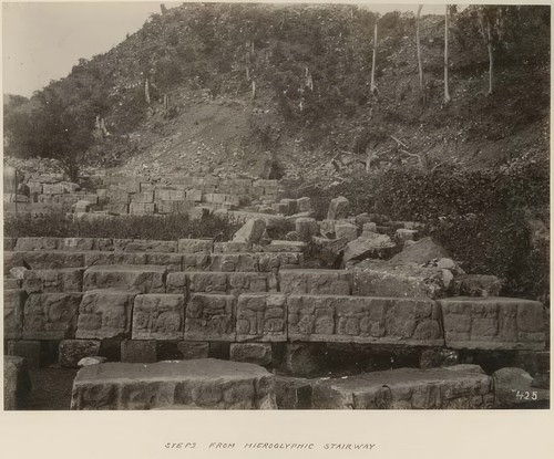 Steps from hieroglyphic stairway Copan Album: Volume 10, Page 25; Written on page: "Steps from hieroglyphic …