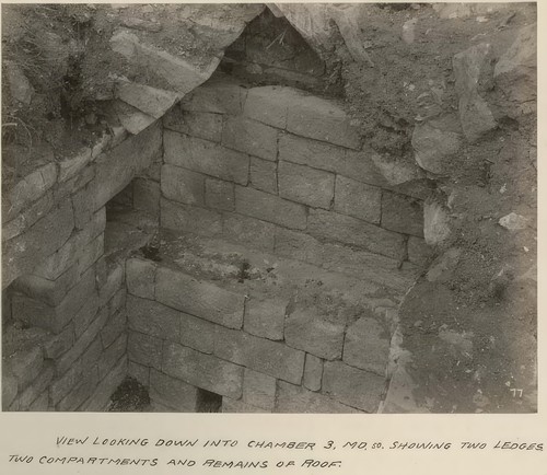 View looking down into Chamber 3, Mound 50 Copan Album: Volume 3, Page 10; Written on page: "View looking down …