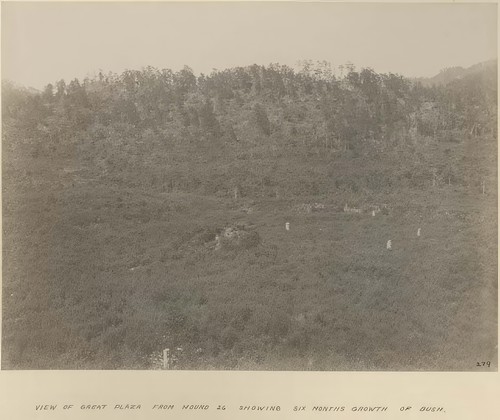 View of Great Plaza from Mound 26 showing six months growth of … Copan Album: Volume 7, Page 21; Written on page: "View of Great …