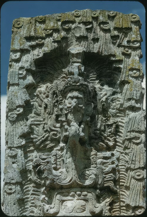 Copan, Stela H, front, detail Written on slide: "Copan, Honduras / Maya ruins / Stela H (front) …
