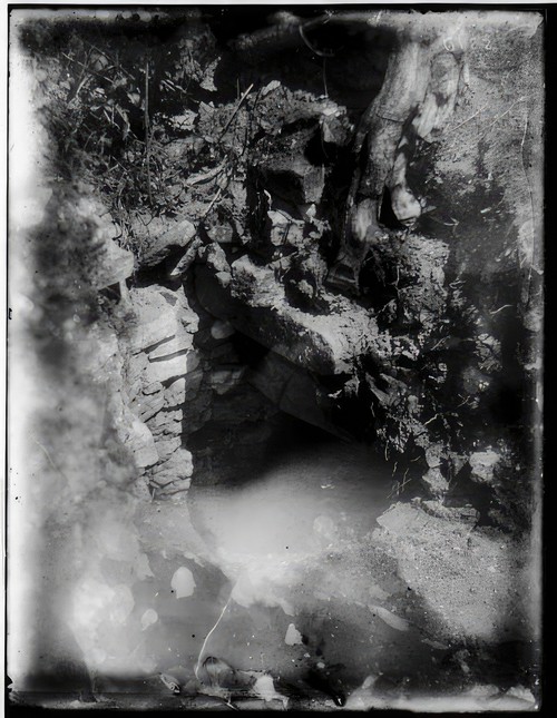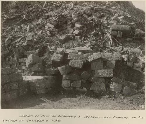 Corner of roof of Chamber 3, covered with cement Copan Album: Volume 3, Page 7; Written on page: "Corner of roof …