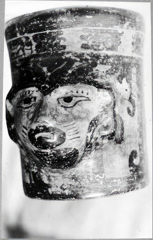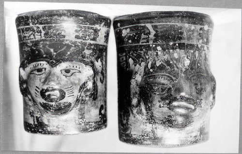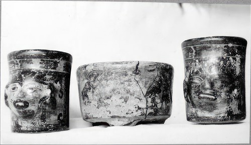 Cylindrical effigy vases, polychrome Rafael Girard Corquin, Dept. of Copan, Honduras. No negative.