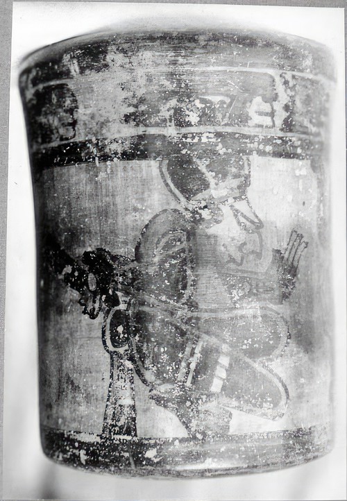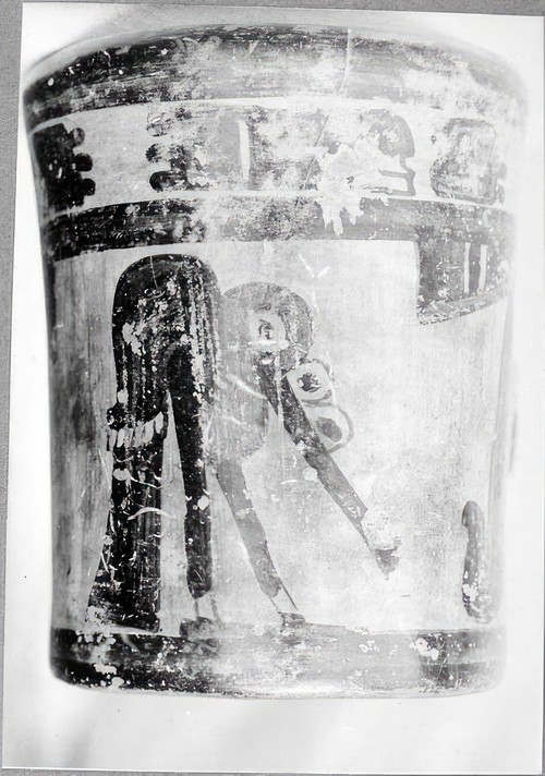 Cylindrical vase, polychrome Rafael Girard Corquin, Dept. of Copan, Honduras. No negative.