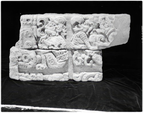Corner of roof at Chamber 3 at Mound 50 Written on board: Copan