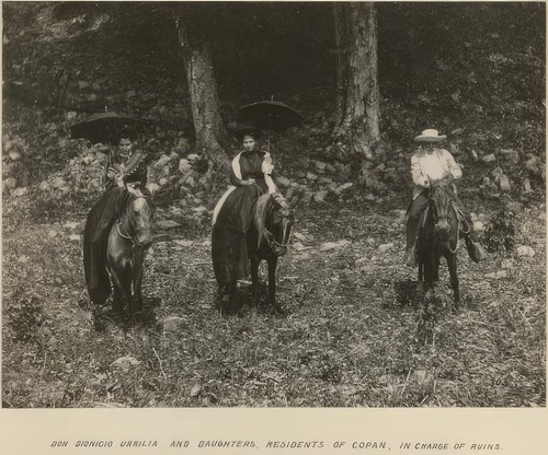 Don Dionicio Urrilia and daughters, residents of Copan, in charge of ruins Copan Album: Volume 5, Page 21; Written on page: "Don Dionicio Urrilia …