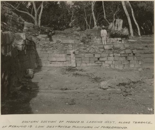 Eastern section of Mound 50, looking west, along terrace of Pyramid 16 Copan Album: Volume 3, Page 5; Written on page: "Eastern section of …