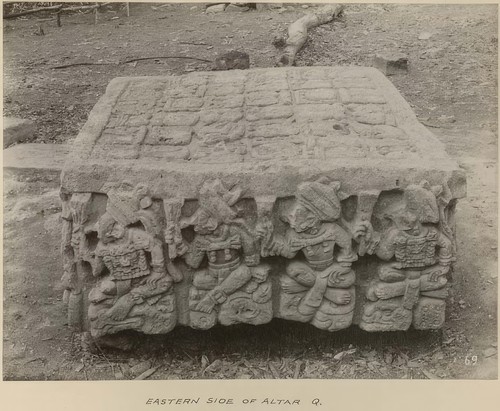 Eastern side of Altar in front of Stela D Written on board: Copan / Eastern side of Altar in front of …