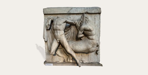 South Metope XXVII, Parthenon Marbles The South Metope XXVII, part of the Parthenon Marbles collection at the …