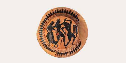 Plate with Theseus and Minotaur Dating from the 5th Century BCE, this Greek pottery artifact is representative …