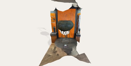 Bronze Cauldron on tripod This artifact is a robust bronze cauldron, supported by a sturdy tripod, …