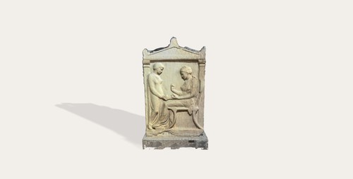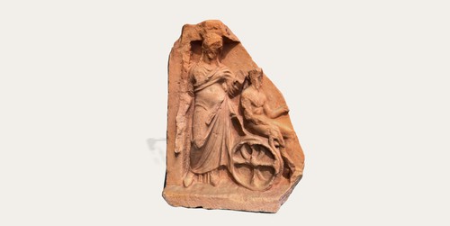Fragment of votive relief with Demeter and Triptolemus This fragmentary marble relief, approximately 40 cm in height and 35 cm …