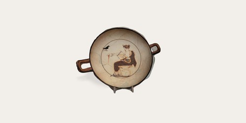 White-ground Kylix with Apollo and Crow of Aigle-Koroni This vessel is representative of white-ground technique prevalent in ancient Greek pottery …