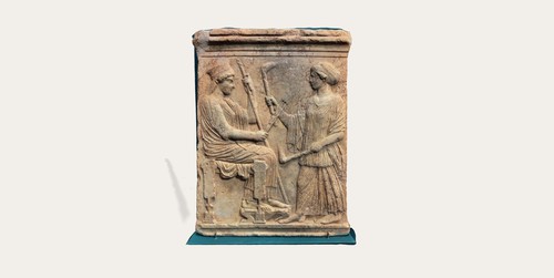 Votive relief of Demeter holding wheat and torch-bearing Kore The 'Votive Relief of Demeter and Kore' is a marble sculpture measuring …