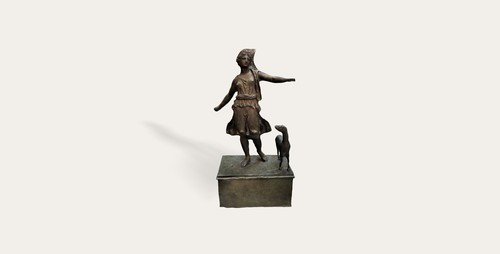Bronze statue of Artemis and a deer This bronze statue depicts Artemis, the goddess, accompanied by a deer. The …