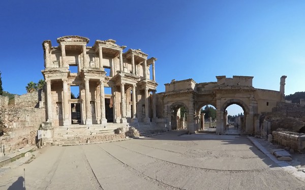 The Library of Celsus in Ephesus, Turkey, is one of the …