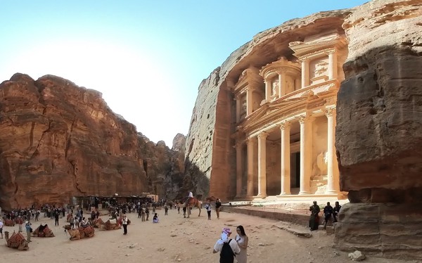 Ancient Nabatean tomb and temple, renowned for its ornate facade carved …