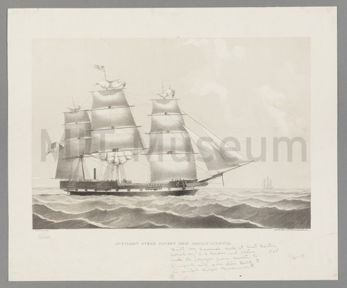 Auxiliary Steam Packet Ship Massachusetts Ship portrait of the auxiliary steam packet ship "Massachusetts" sailing towards the …