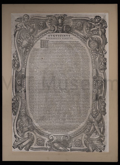 Augustinus Barbadicus Venetus Engraved portrait of Augustinus Barbadicus Venetus in armor, in an elaborate border. …