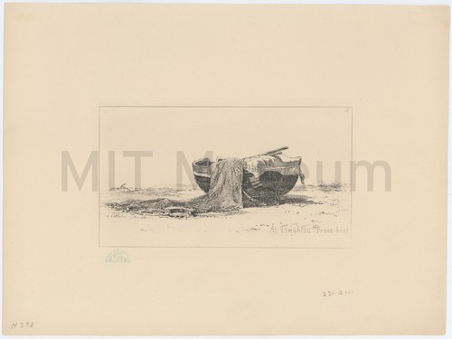 At Brighton--Prawn-boat View of a small boat on a shore, with nets hung out …