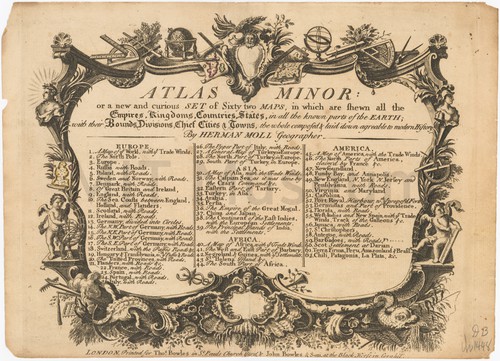 Atlas Minor -- by Herman Moll, geographer Frontispiece to an edition of Herman Moll's Atlas Minor, "or a new …