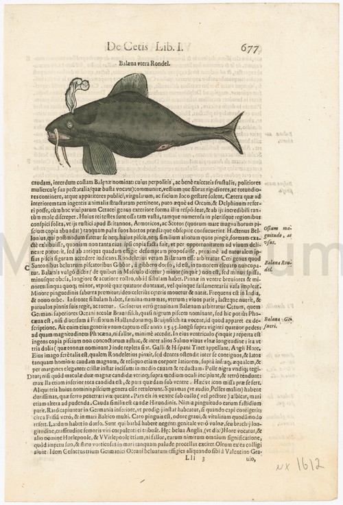 Balaena Bellonij Page 676 (verso 675) from the book "De cetis" (Liber 1) by …