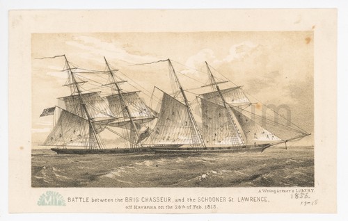 BATTLE between the BRIG CHASSEUR, and the SCHOONER St. LAWRENCE, off Havanna … Depiction of Baltimore clipper Chasseur's capture of HMS St. Lawrence on February …