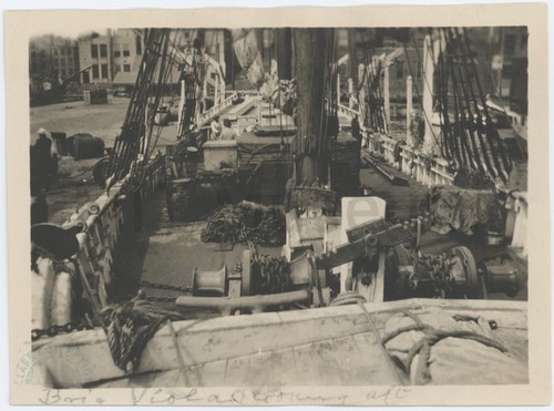 Brig "Viola" looking aft Photograph taken atop the cabin of the whaler "Viola", looking towards the …