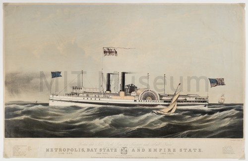 Boston and New York Line via Newport and Fall River consisting of … Lithograph portrait and sideview of the steamboat Metropolis. "Boston and New York …