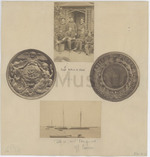 Capt. Lawlor - "Neversink" and "Sea Serpent" Photograph mounted on card with descriptive text on verso. Photograph is of …